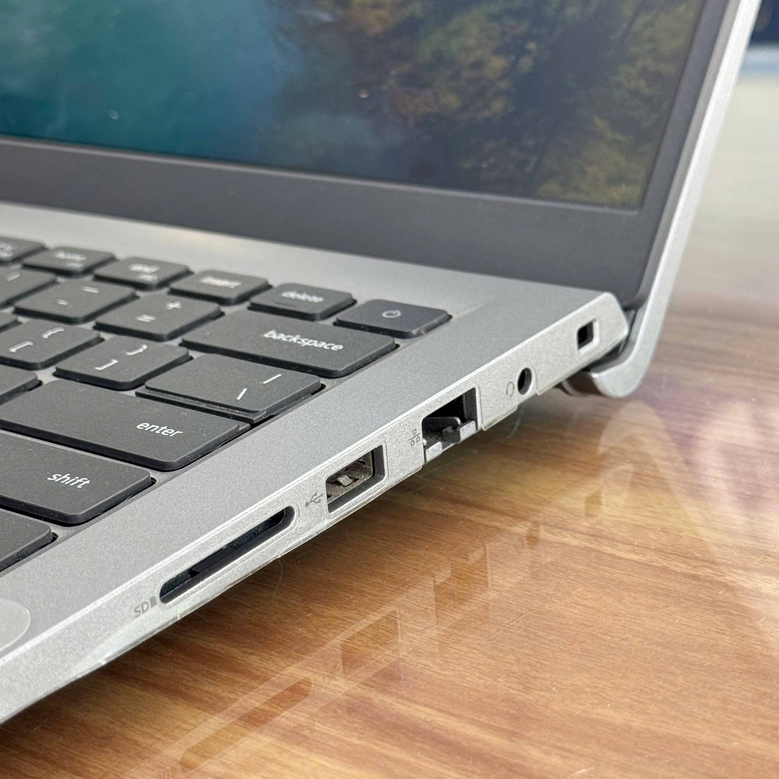 Máy được trang bị đầy đủ các cổng kết nối thông dụng, đáp ứng tốt nhu cầu cắm chuột, USB, kết nối màn hình ngoài hay máy chiếu. Nhờ vậy, người dùng không cần phải mang theo hub chuyển đổi rườm rà, rất tiện cho môi trường văn phòng và học tập.