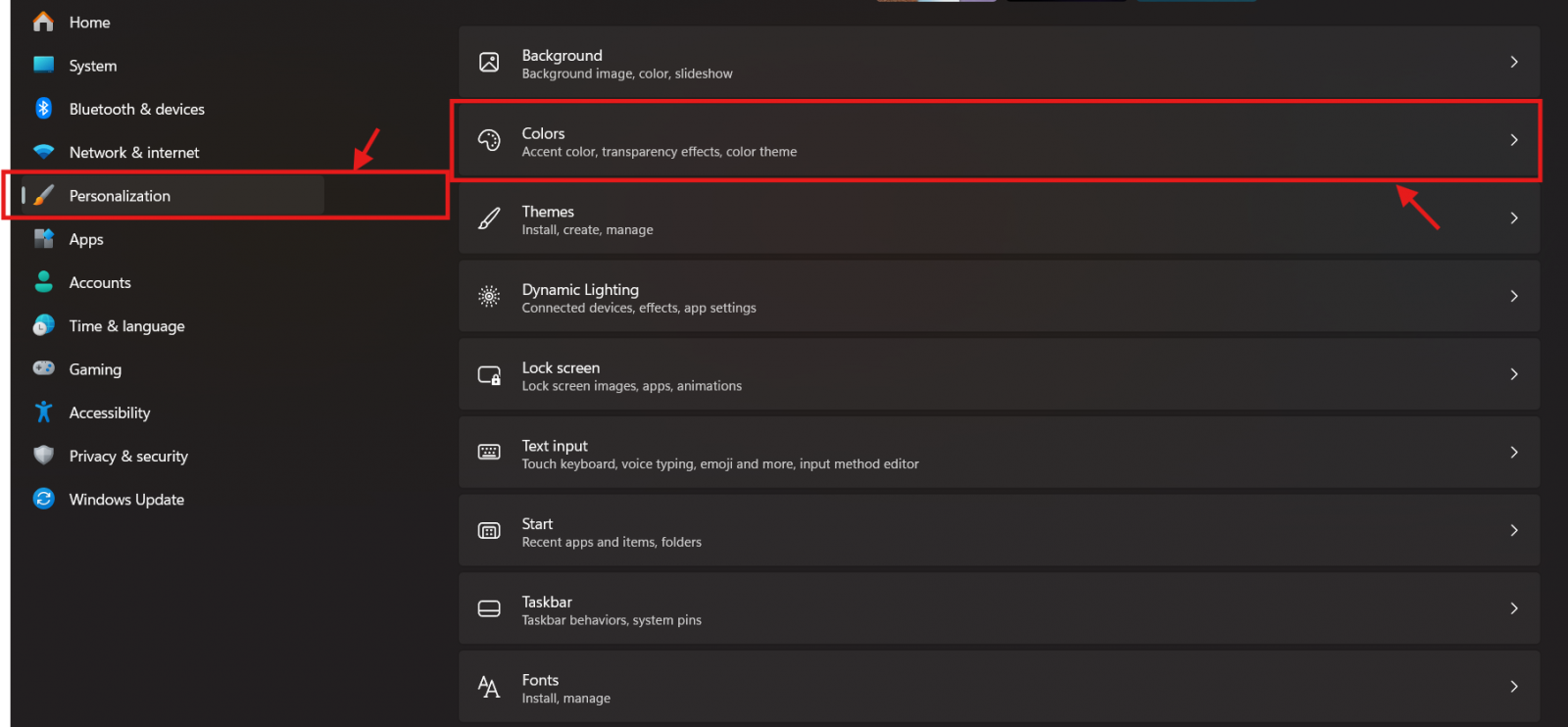 Bước 3: Ở thanh bên trái, chọn Colors (Màu sắc).
