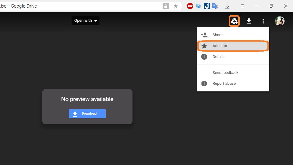 Bước 2: Truy cập vào đường dẫn tới file bị giới hạn lượt tải của Google → Chọn Menu 3 chấm (Góc trên bên phải) → Add Star (Thêm dấu sao)