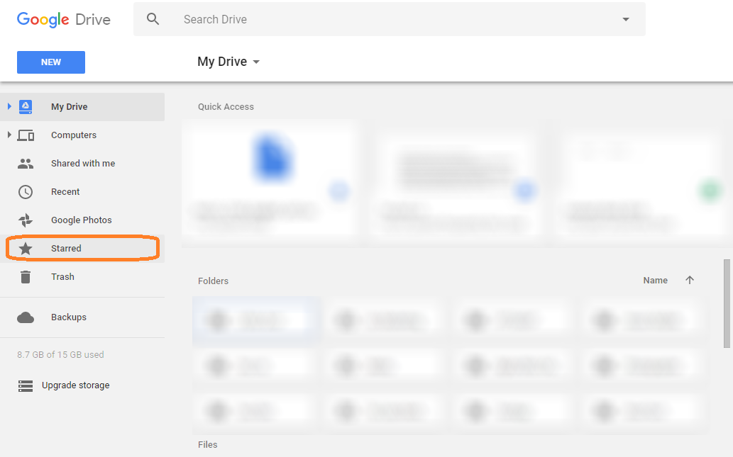 Bước 3: Truy cập vào Drive của tôi → Chọn Starred (Được gắn dấu sao)