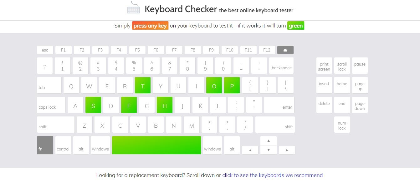 Xem kết quả: Phím hoạt động tốt sẽ xuất hiện trên dòng màu xanh. Phím không hoạt động sẽ không hiển thị.
