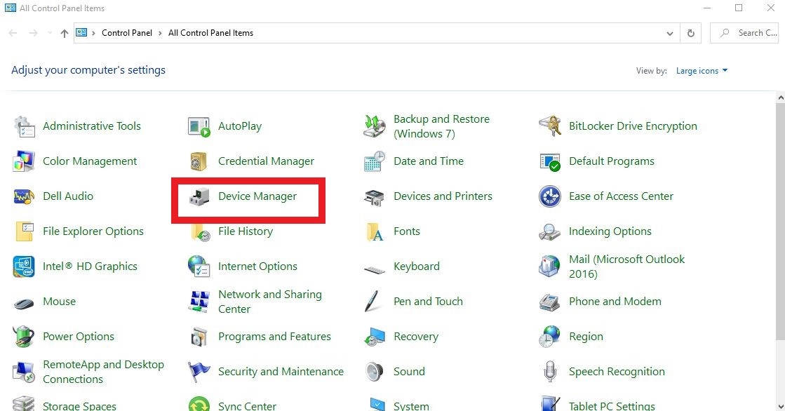 Mở Device Manager: Chọn Device Manager trong cửa sổ Control Panel.